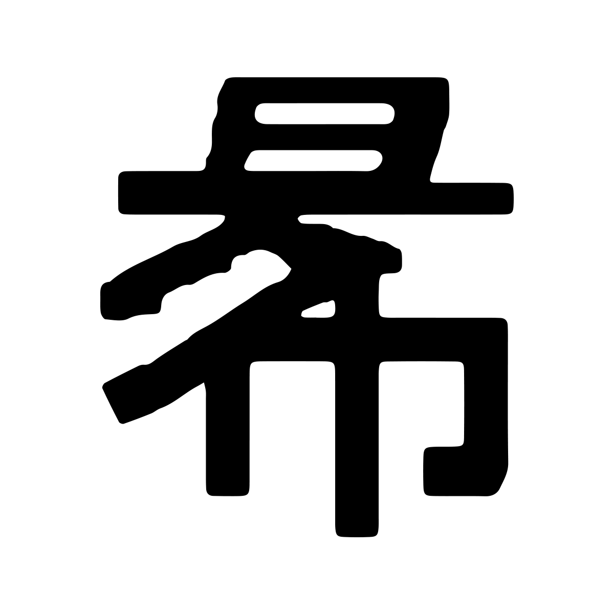 「呪」(会意)もとの字は祝。呪は祝より分化した字で、呪詛のときに用いる。兄は祝祷の器を戴いて、祈る人の形。そこに神気の下るのは兌(えつ)。祝祷の器を列ねて祈るので、字はまた咒に作る。古い文献にはみえず、後漢以後に至ってみえる字である。